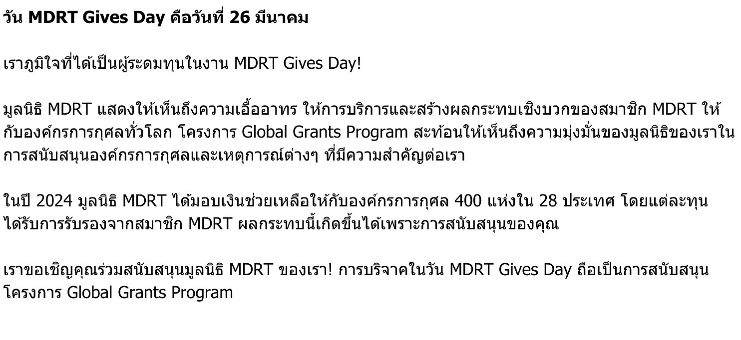MDRT Foundationสวัสดีค่ะ จ้อน จิรวดี หอมเพชร ผู้ระดมทุน ของมูลนิธิ MDRT ในงาน MDRT GIVES DAY 2025 จากประเทศไทย